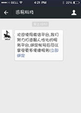 關(guān)注后會自動彈出立即綁定的消息,點擊綁定賬號。