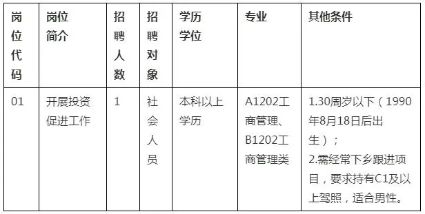 本次共招聘專(zhuān)項(xiàng)工作隊(duì)員1名。招聘崗位條件如下: